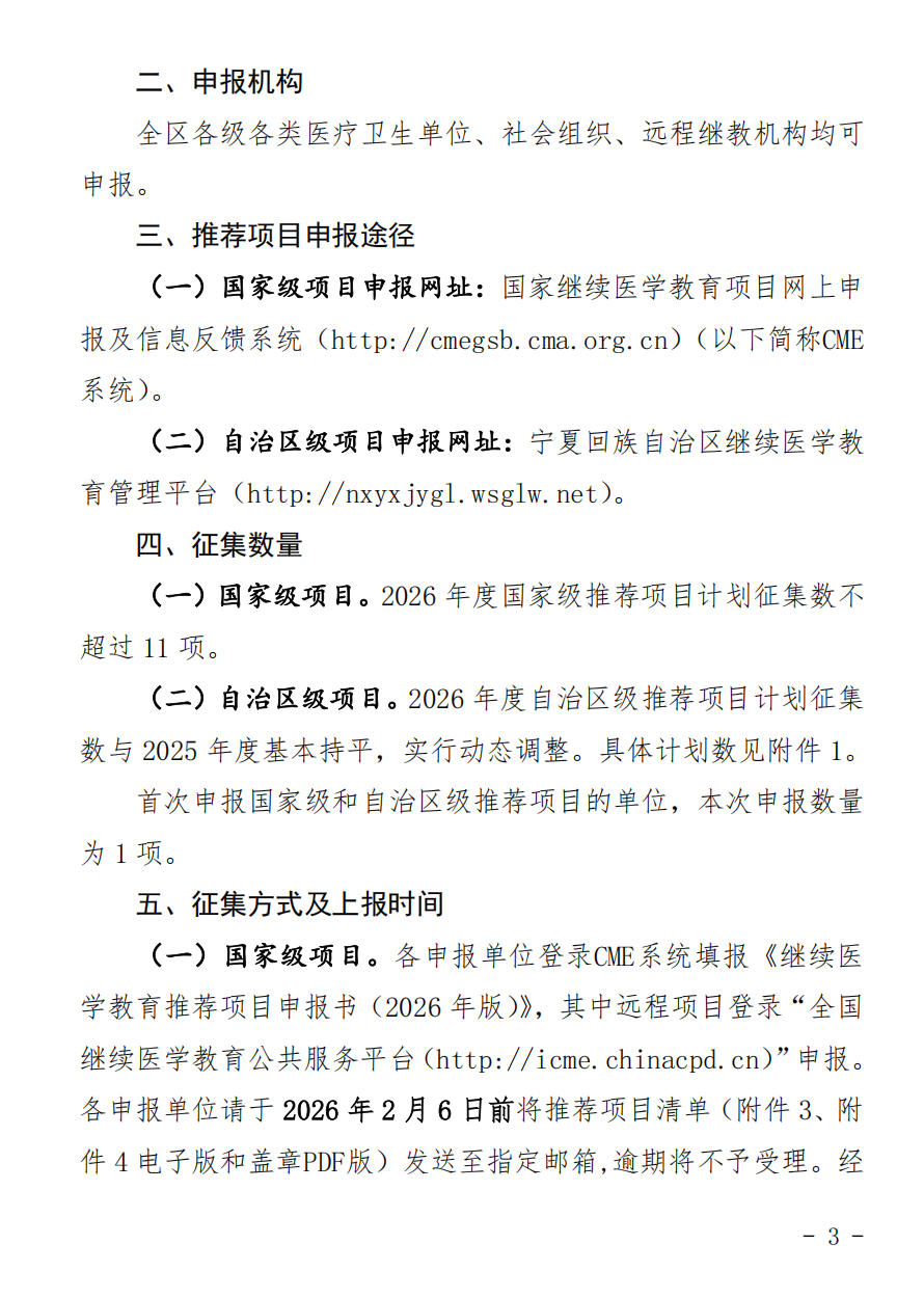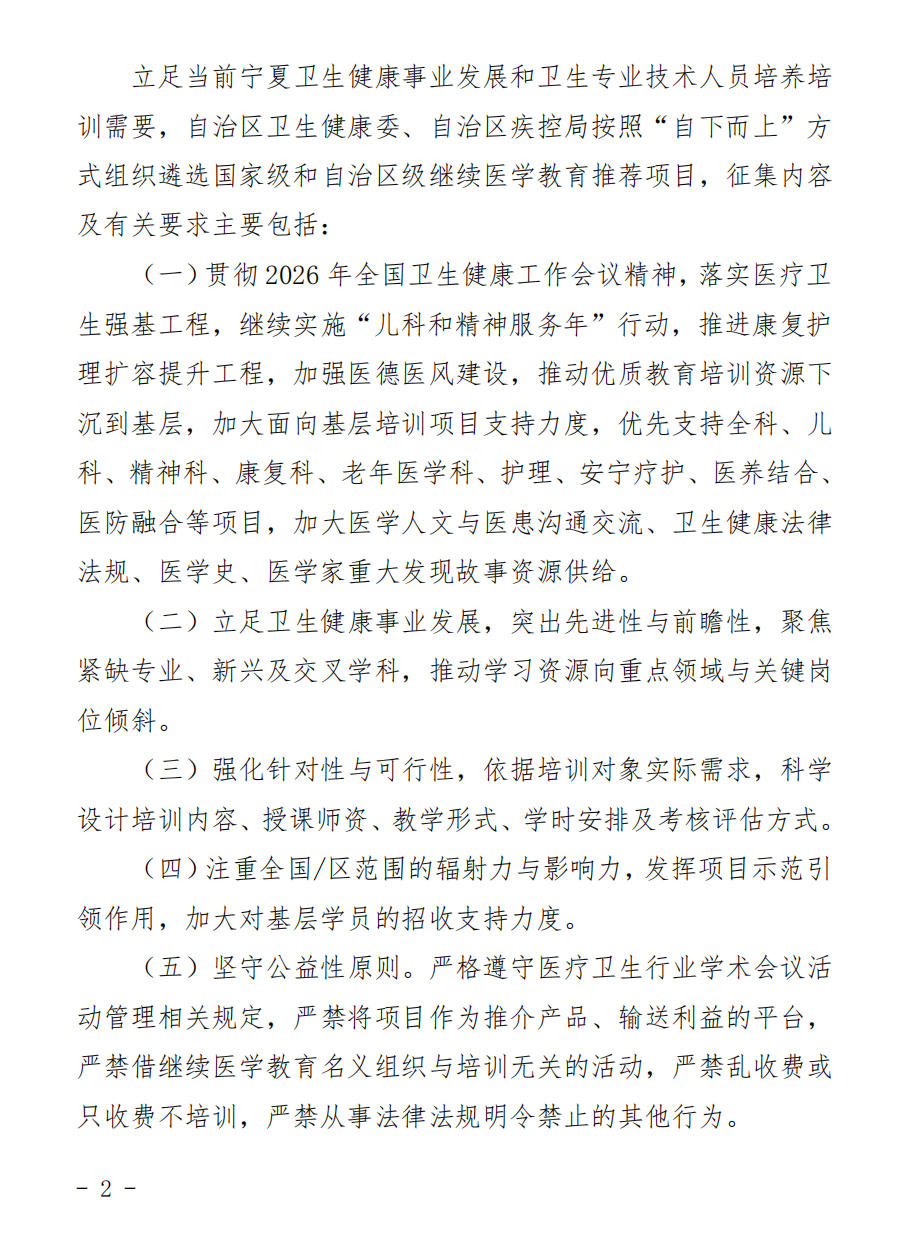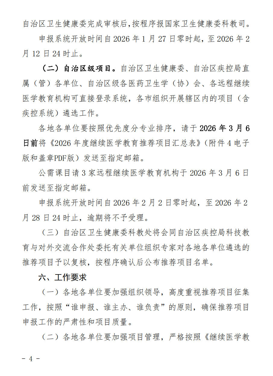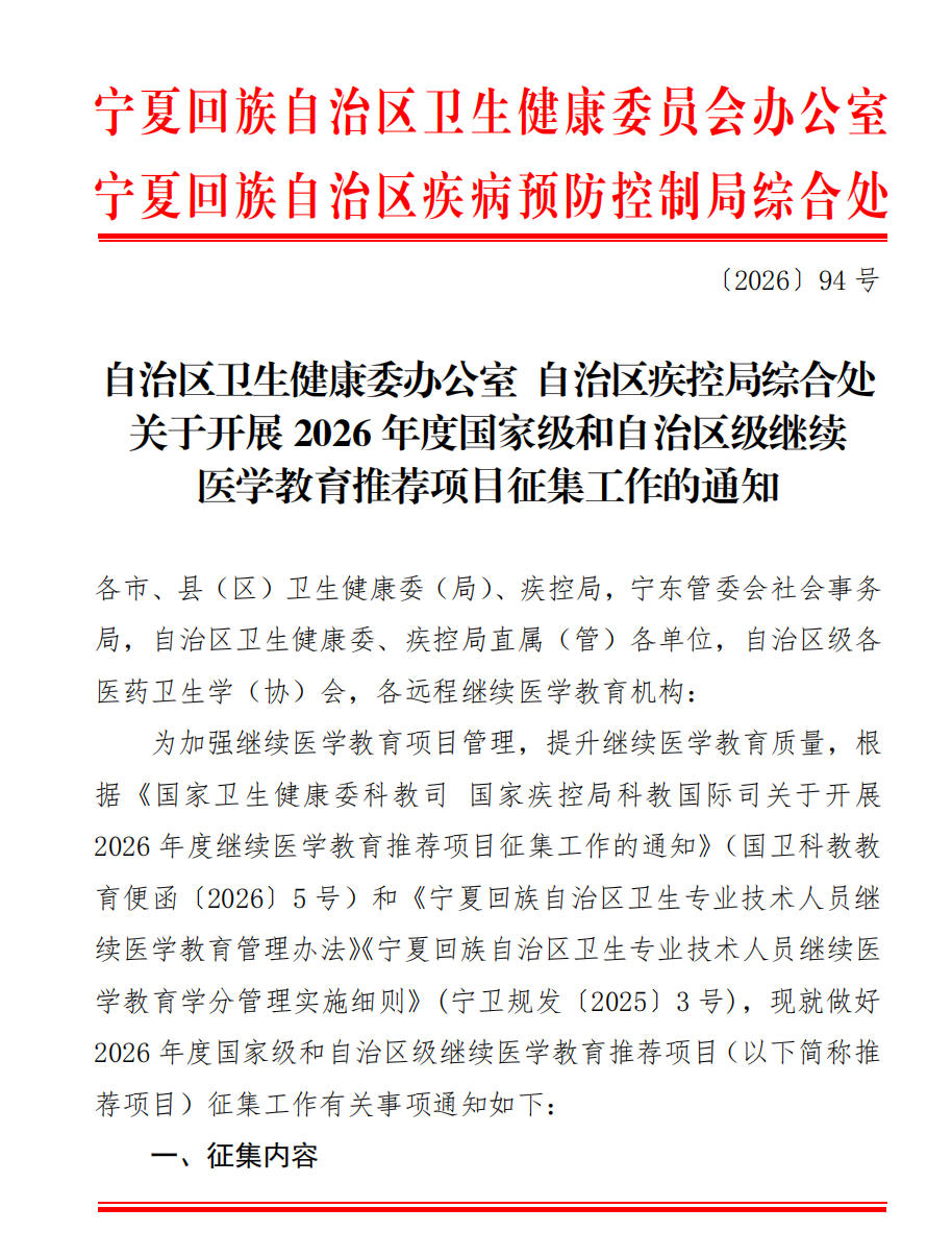 关于开展2026年度国家级和自治区级继续医学教育推荐项目征集工作的通知