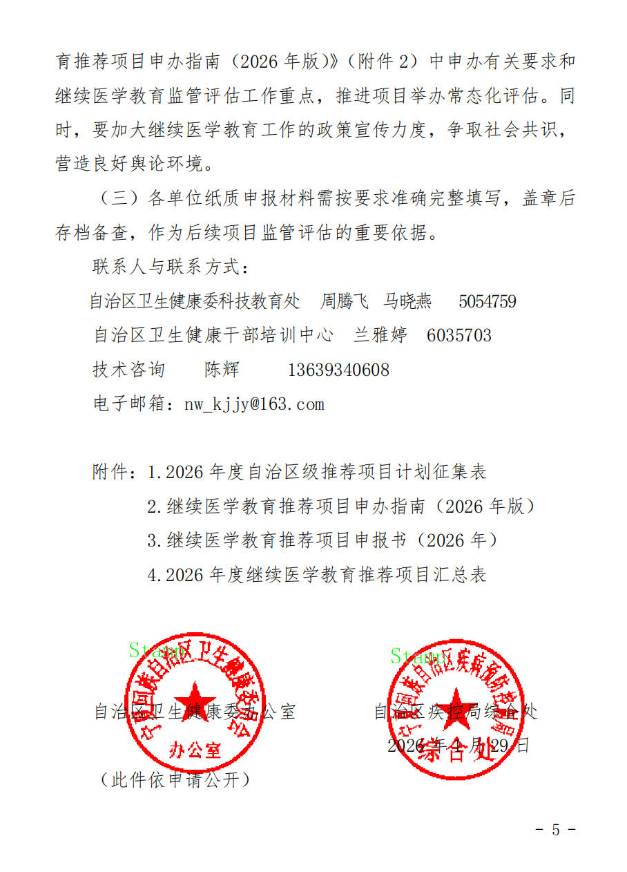 自治区卫生健康委办公室 自治区疾控局综合处关于开展2026年度国家级和自治区级继续医学教育推荐项目征集工作的通知(1).pdf